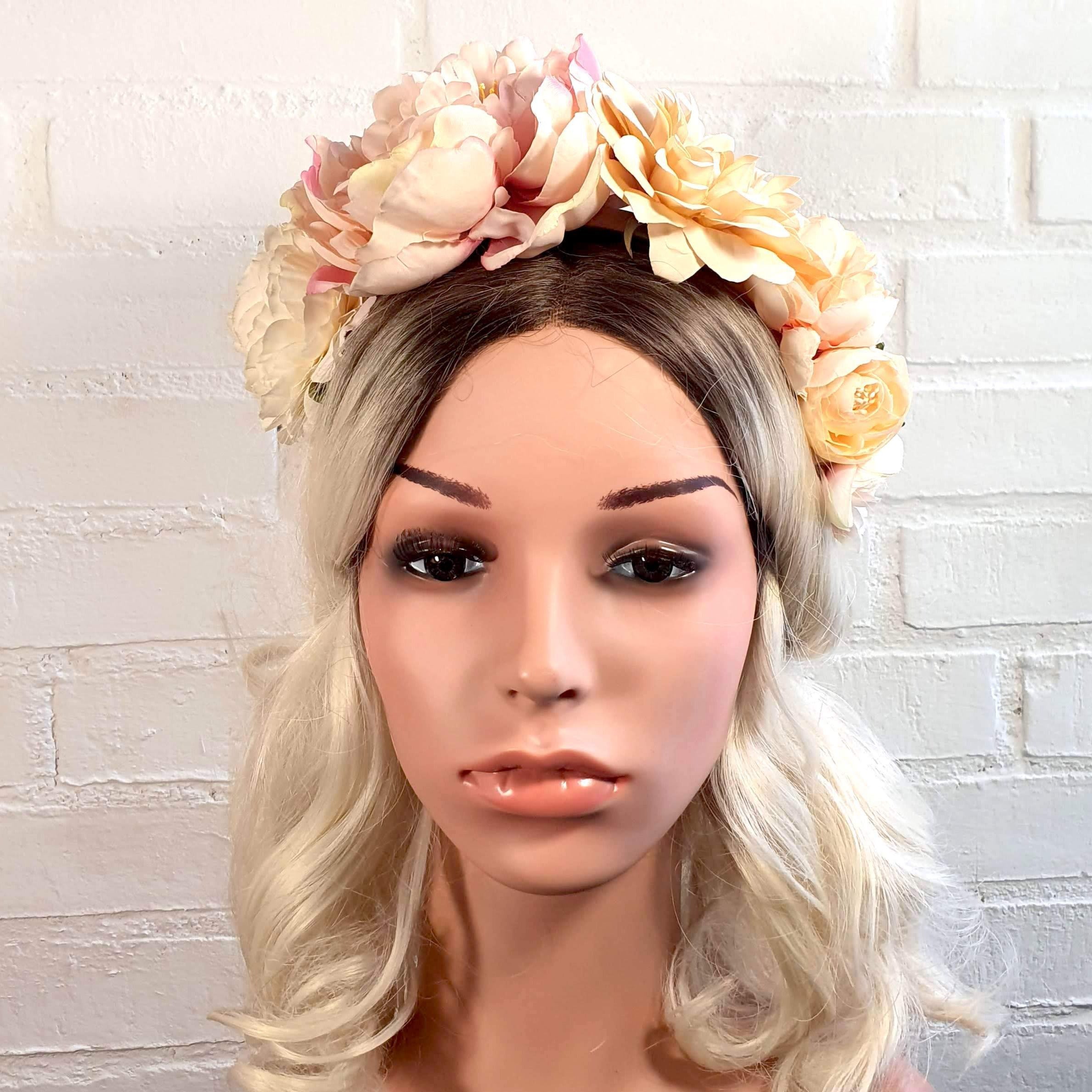 Blomsterkrone med de smukkeste blomster i blush og elfenben