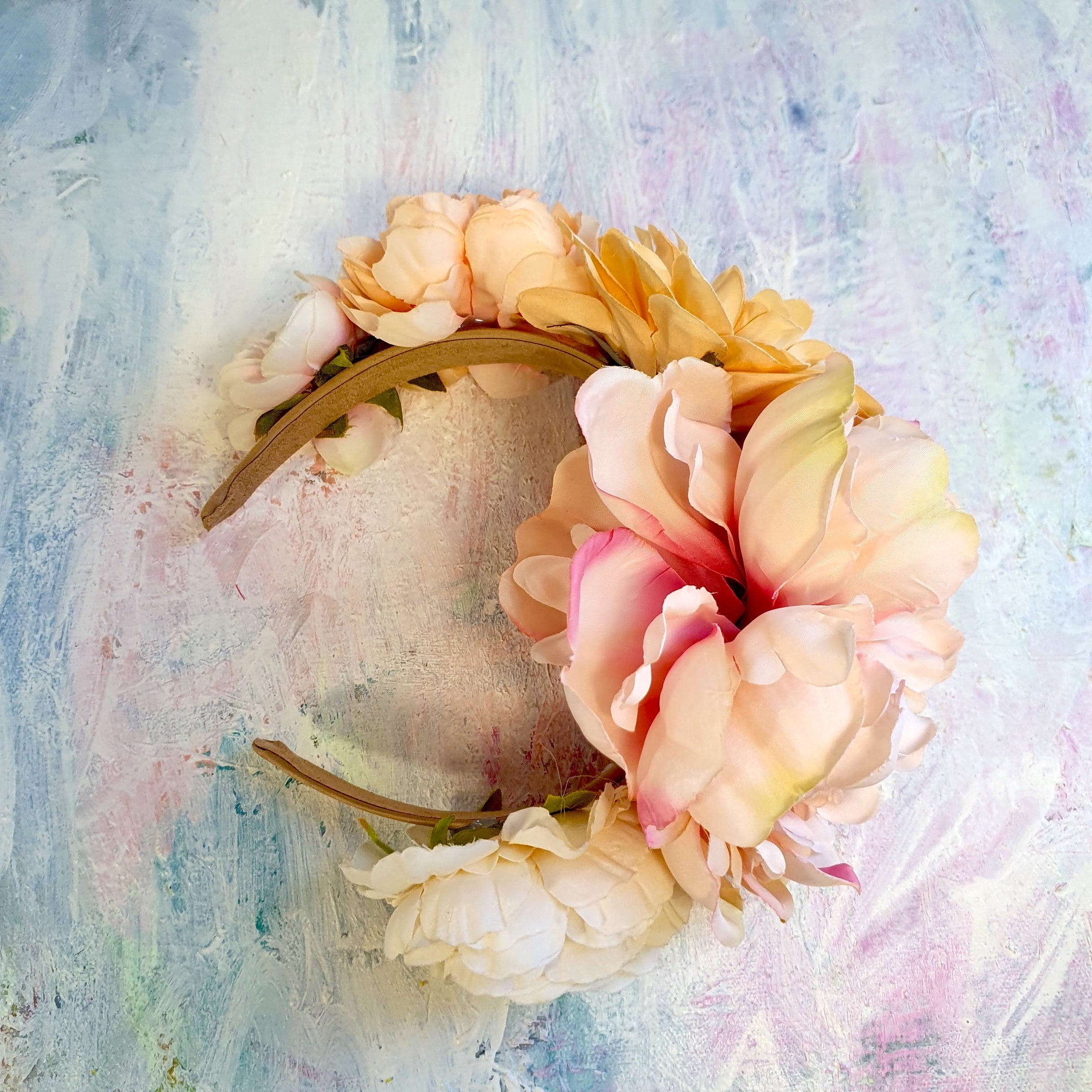 Prøv lige at se den store blushfarvede pæon i midten på hårbøjlen. Den er seriøst noget af det pæneste nogensinde.